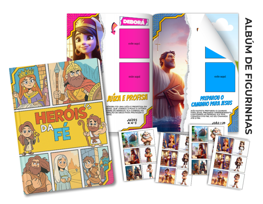 Figurinhas Incríveis para colar, aprender e se inspirar! Com todos os considerados Heróis da Fé